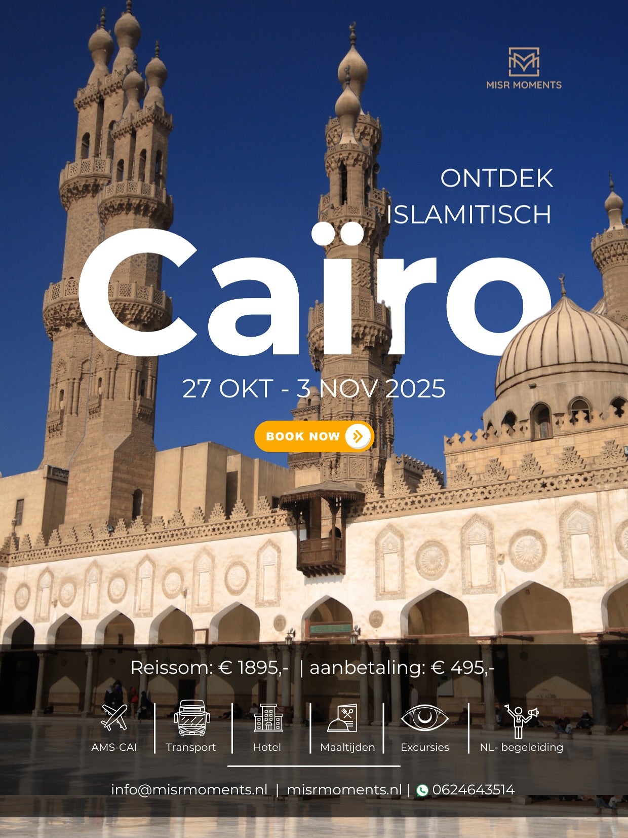 Bij Misr Moments organiseren we onvergetelijke moslimvriendelijke groepsreizen naar Caïro voor moslims en geïnteresseerde reizigers uit Nederland en België. Samen beleven wij Caïro vanuit een islamitisch perspectief. Onze reizen combineren geschiedenis, cultuur en verbinding, met begeleide en zorgeloze ervaringen in het hart van Egypte.